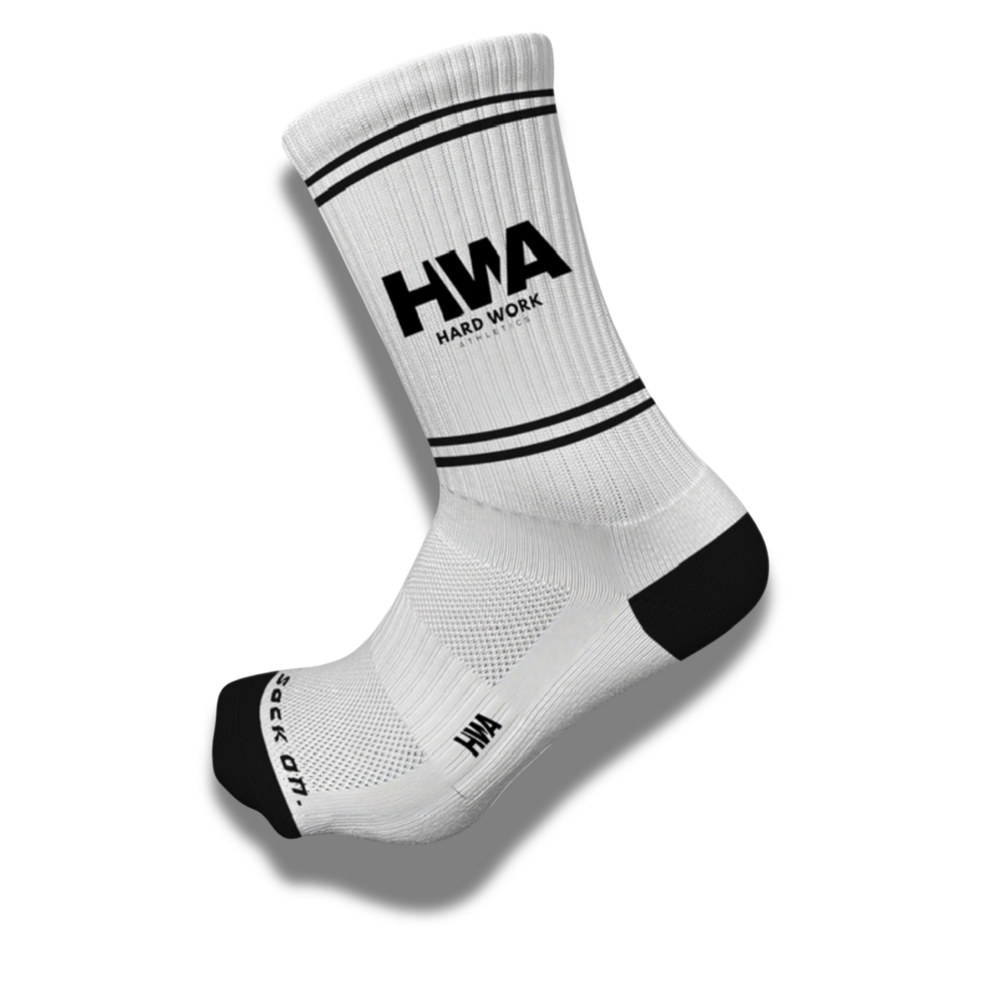 Featuring our bold HWA | Hard Work Athletics branding and engineered ribbed support, these socks lock in your foot without slipping under pressure.